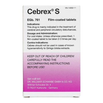 Cebrex-S ( Ginkgo Biloba ) Hộp 6 vỉ x 20 viên