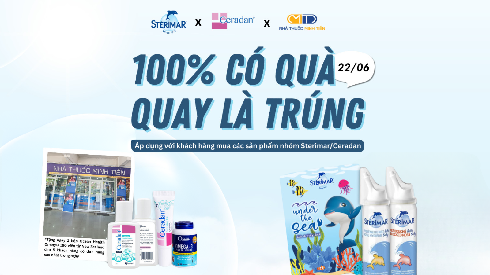 🔥 Duy nhất ngày 22/6, Nhà thuốc Minh Tiến cùng 2 thương hiệu Sterimar và Ceradan mang đến cho bạn những phần quà hấp dẫn đánh bay cái nóng của mùa hè này!!!