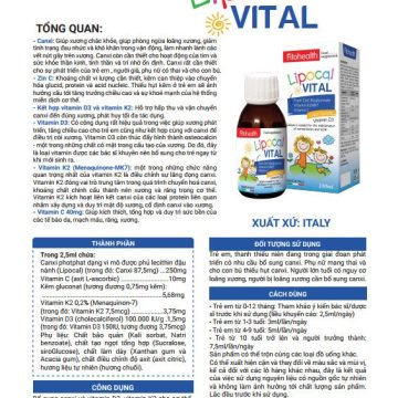 ☘️ Ưu điểm của canxi sinh học trong Lipocal Vital là hàm lượng canxi nguyên tố cao giúp trẻ vừa dễ hấp thu, vừa nhận được lượng lớn canxi x3,5 lần trong 1 lần uống, khắc phục đc nhược điểm của calci thường hàm lượng calci nguyên tố thấp, sinh khả dụng thấp, dễ gây kích ứng đường tiêu hoá.