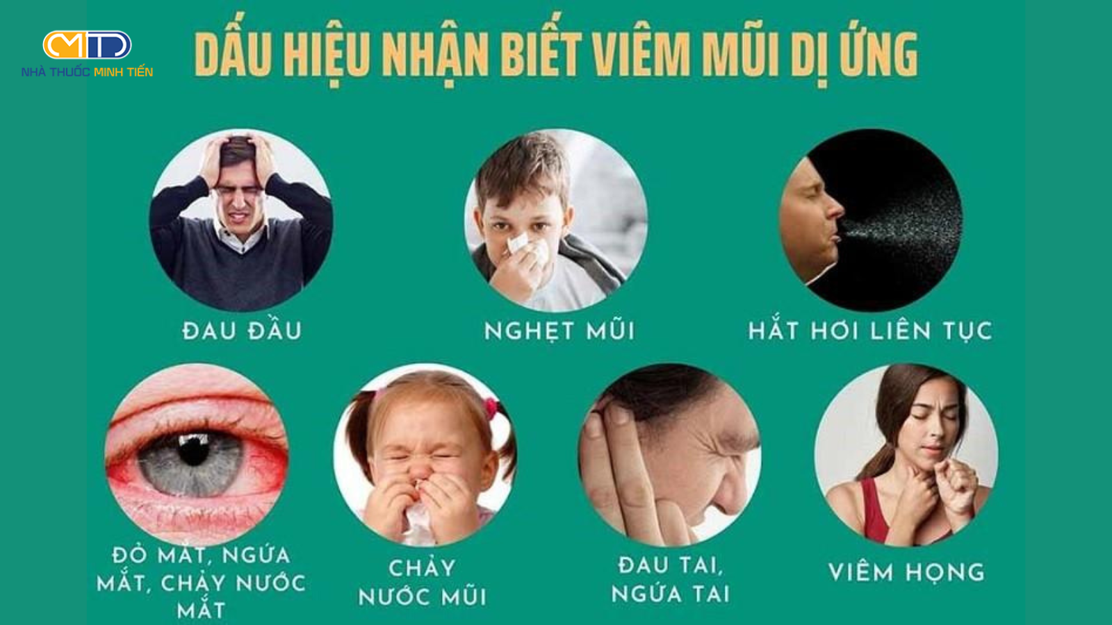 - Mũi: Chảy nước mũi, nghẹt mũi, hắt hơi, ngứa mũi, chảy dịch mũi sau, giảm khứu giác, đau mặt.